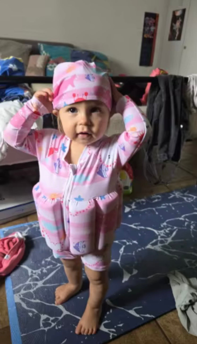 Absolutely! The suit features an adjustable buoyancy system with removable foam sticks. As your child’s skills and confidence grow, you can gradually remove the inserts one by one. This transitions them from a supported floater to an independent swimmer at a pace that feels safe for everyone.